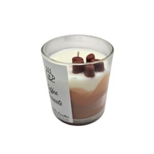 100% plant-based soy wax with a cotton wick in a glass jar, featuring coffee beans and a Coffee Arabica scent.