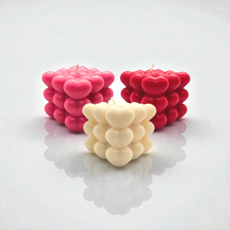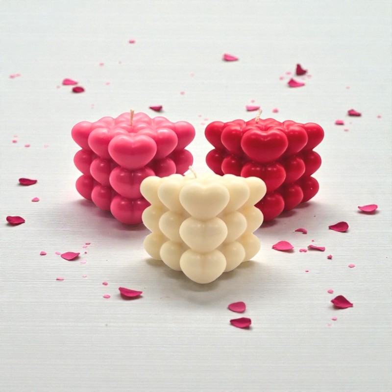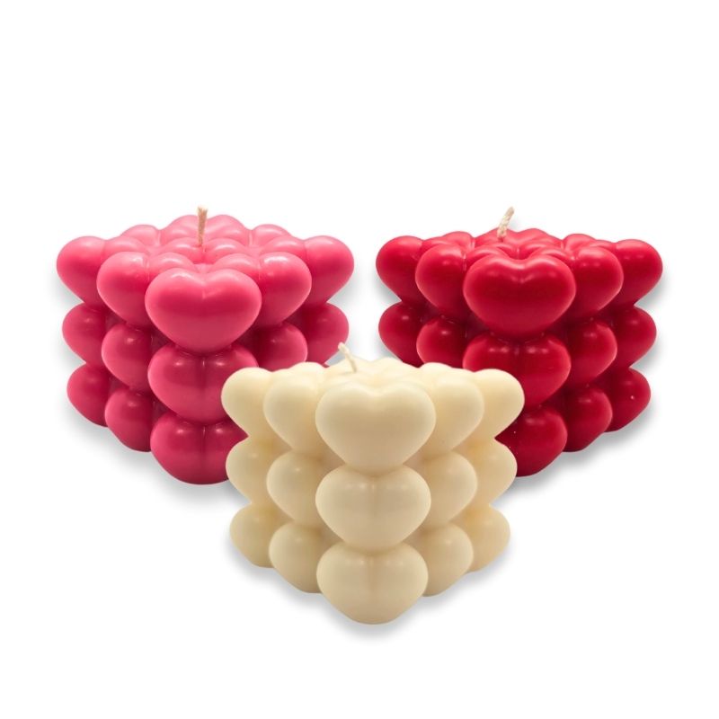 100% Φυτικό κερί ελαιοκράμβης με βαμβακερό φυτίλι σε σχήμα Bubble Cube με καρδιές.