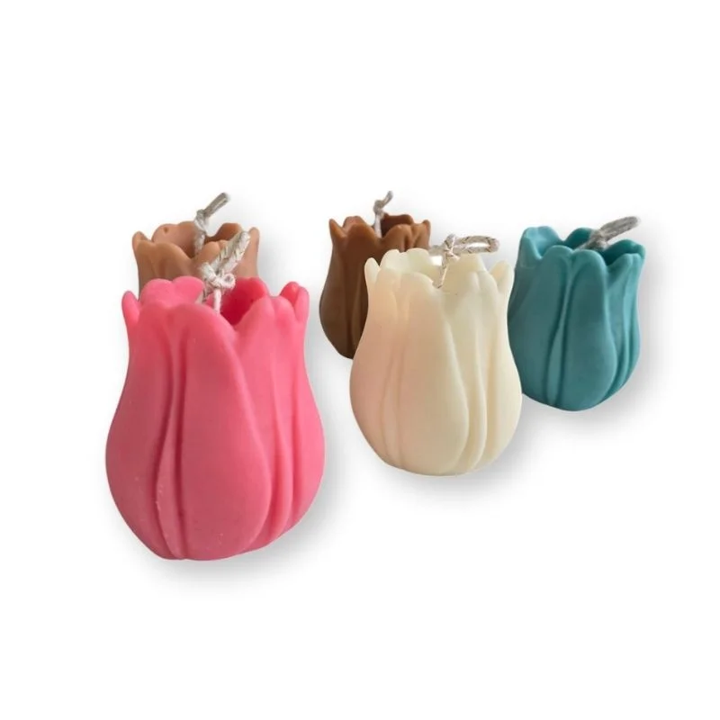 100% Φυτικό κερί ελαιοκράμβης με βαμβακερό φυτίλι σε σχήμα τουλίπας.