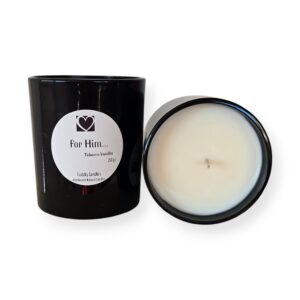 100% Φυτικό λευκό κερί σόγιας με βαμβακερό φυτίλι σε γυάλινο μαύρο gloss ποτήρι και άρωμα Tobacco Vanilla.