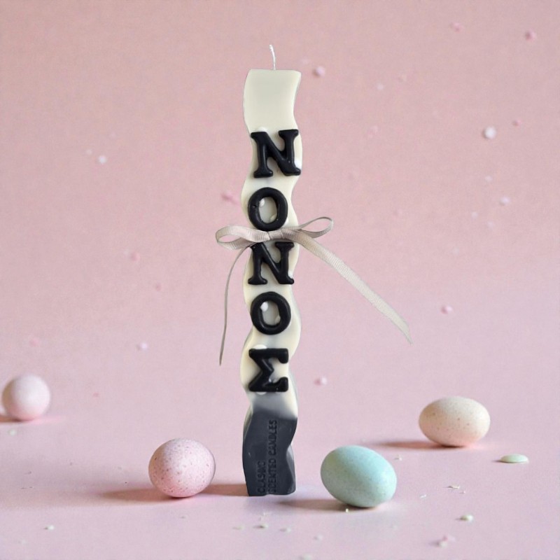 Λαμπάδα κυματιστή με 100% Φυτικό δίχρωμο κερί ελαιοκράμβης με βαμβακερό φυτίλι, με την λέξη ΝΟΝΟΣ και άρωμα Spring Blossom.