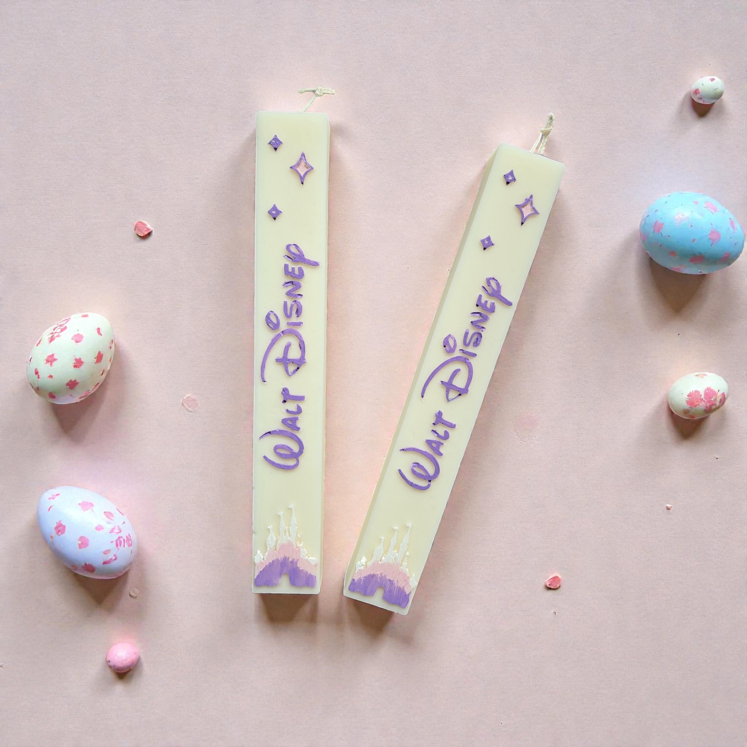 Λαμπάδα Walt Disney με 100% Φυτικό κερί ελαιοκράμβης με βαμβακερό φυτίλι, σε χρώμα άσπρο και άρωμα Spring Blossom, ζωγραφισμένη στο χέρι.