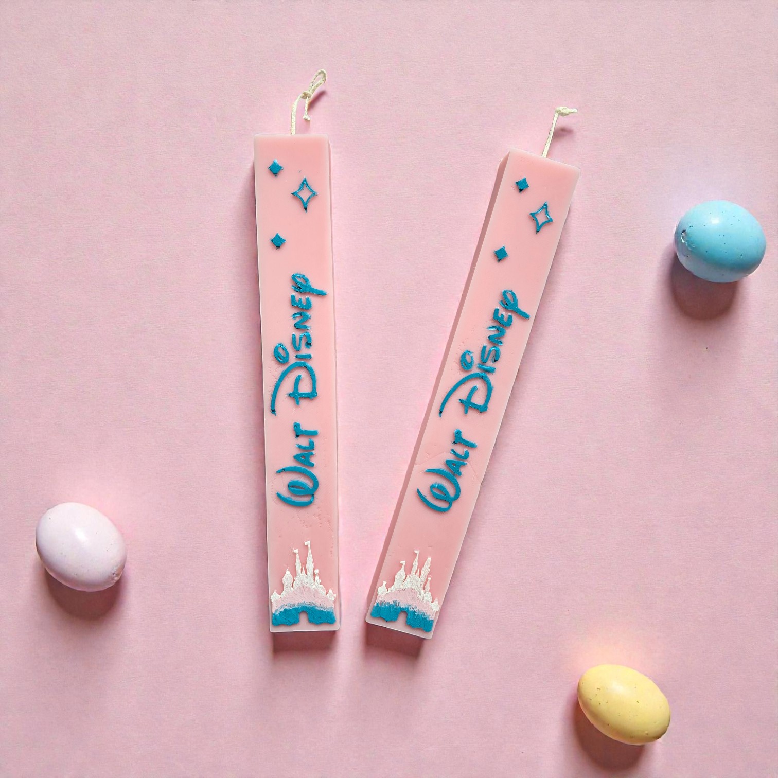 Λαμπάδα Walt Disney με 100% Φυτικό κερί ελαιοκράμβης με βαμβακερό φυτίλι, σε χρώμα ροζ και άρωμα Spring Blossom, ζωγραφισμένη στο χέρι.