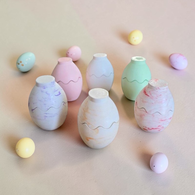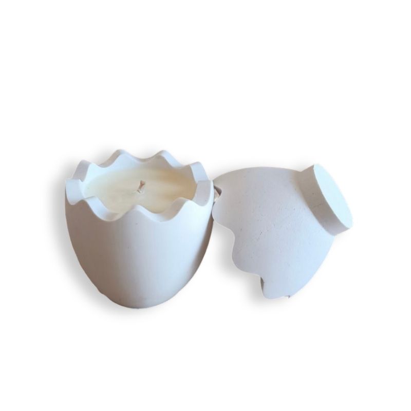 100% Φυτικό λευκό κερί σόγιας με βαμβακερό φυτίλι σε χειροποίητο δοχείο από πορσελάνη σε σχήμα Πασχαλινό αυγό.