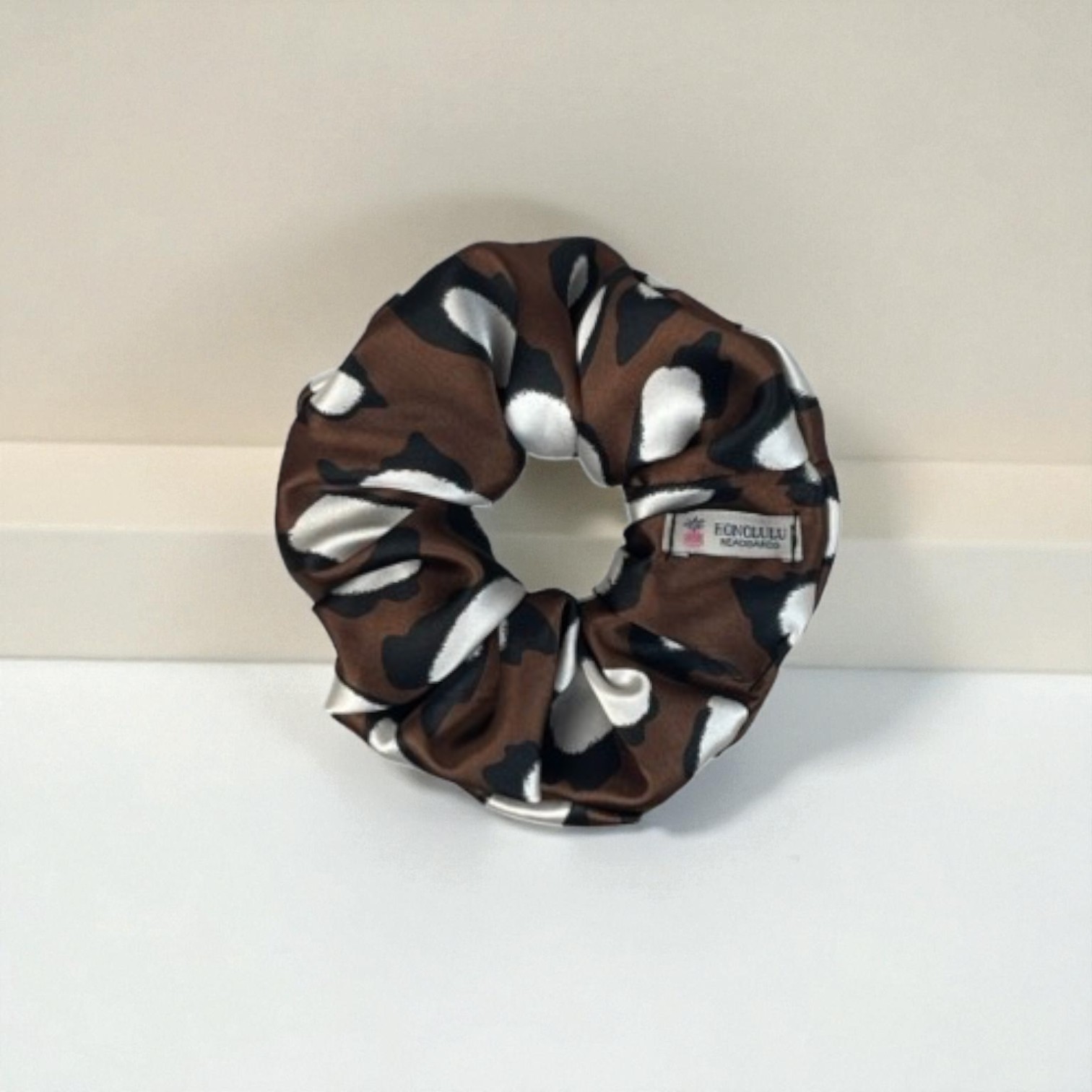 Scrunchie XL Μεταξένια Υφή – Μαύρο & Καφέ