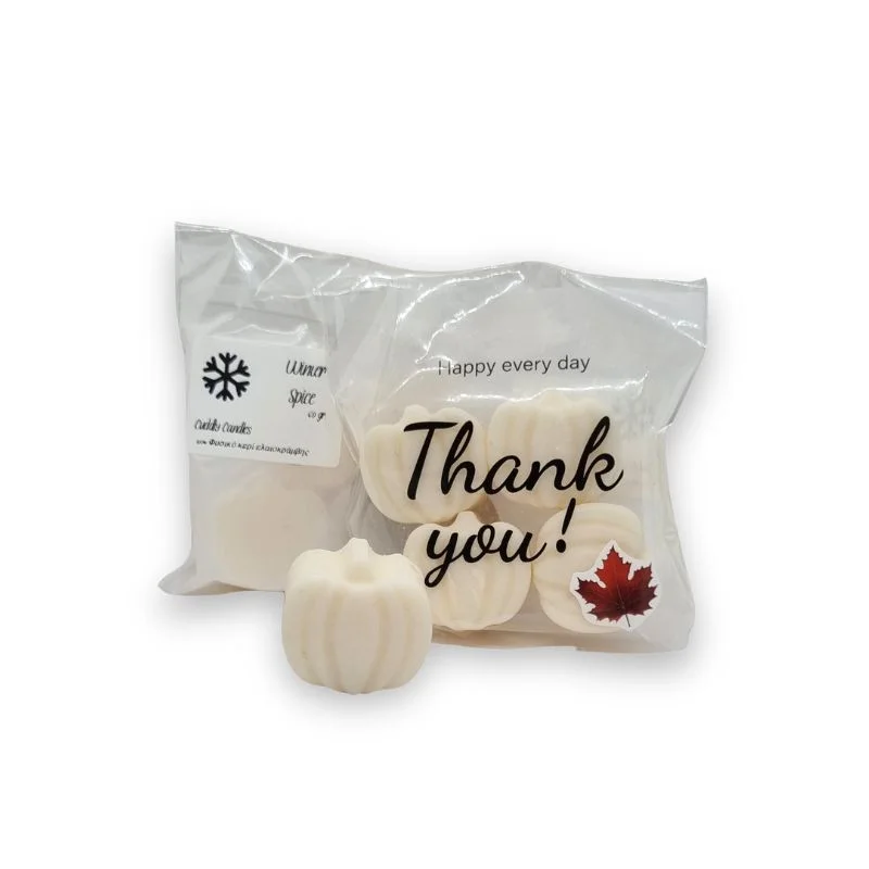 Wax melts από 100% φυτικό κερί ελαιοκράμβης σε σχήμα κολοκύθας, χρώμα λευκό και άρωμα Winter Spice.