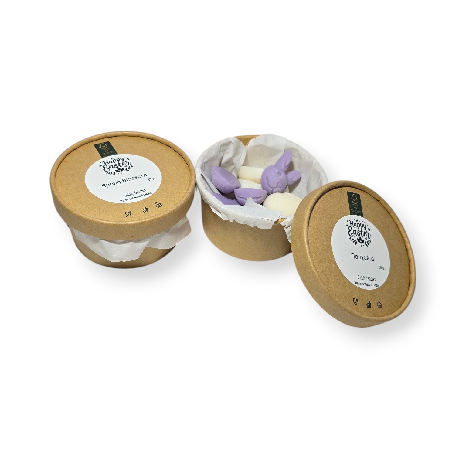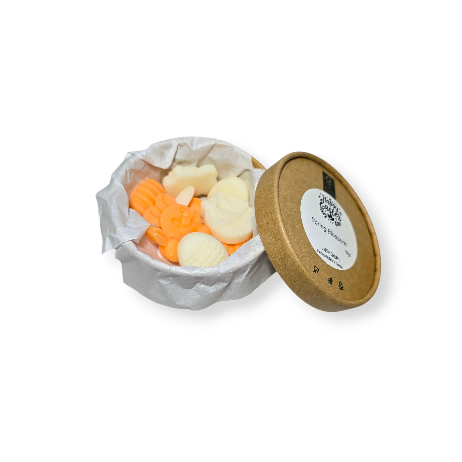 50 gr Wax melts από 100% φυτικό κερί ελαιοκράμβης  σε Πασχαλινά σχέδια σε χάρτινη συσκευασία.